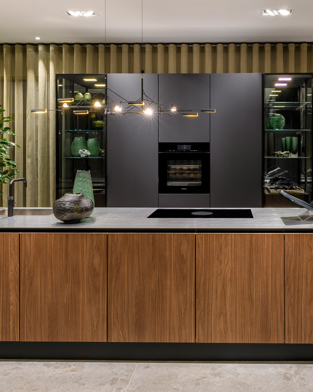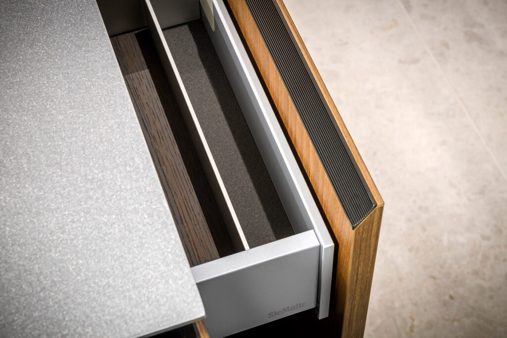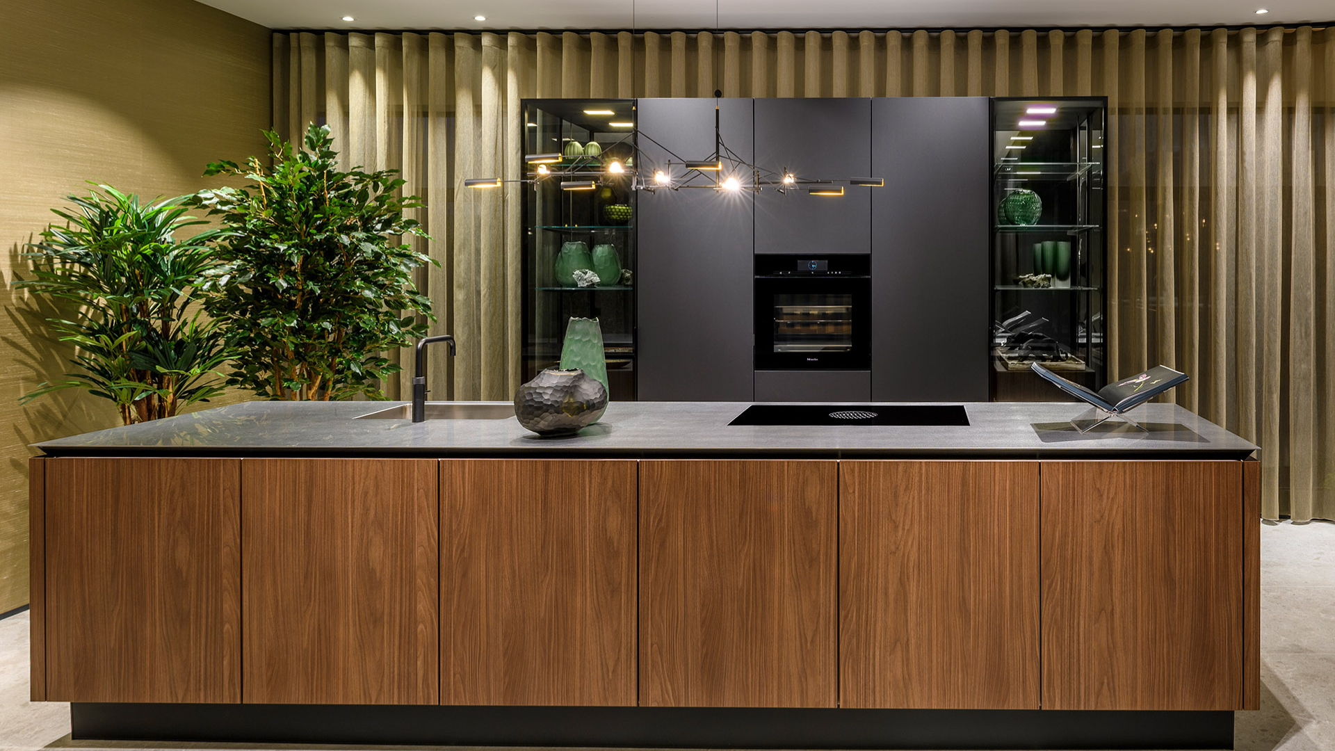 Een keuken die verdwijnt in de ruimte en tegelijkertijd alle aandacht trekt. Deze SieMatic Pure keuken is ontworpen als een architectonisch meubelstuk. Een strak, robuust eiland in Lincoln walnut met zwart zijdematte accenten, waarin koken en spoelen opgaat in één elegant volume. Geen zichtbare grepen, geen onderbrekingen, alleen doorlopende fronten en een perfect verlicht lijnenspel.